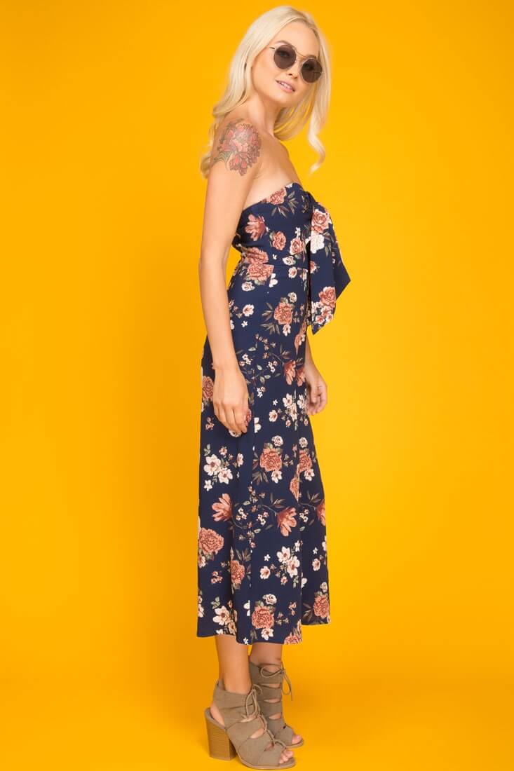 Khloe Floral Summer Bow Tie Jumpsuit Navy