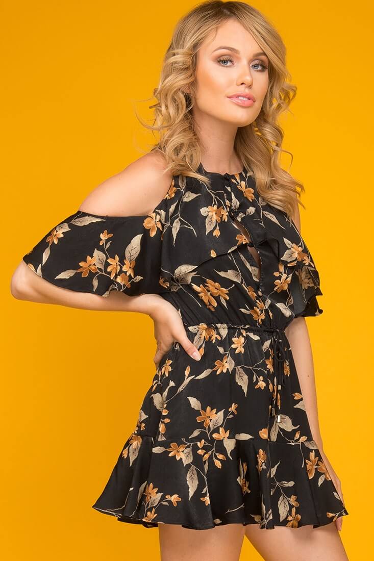 Camila Floral Off The Shoulder Romper Black