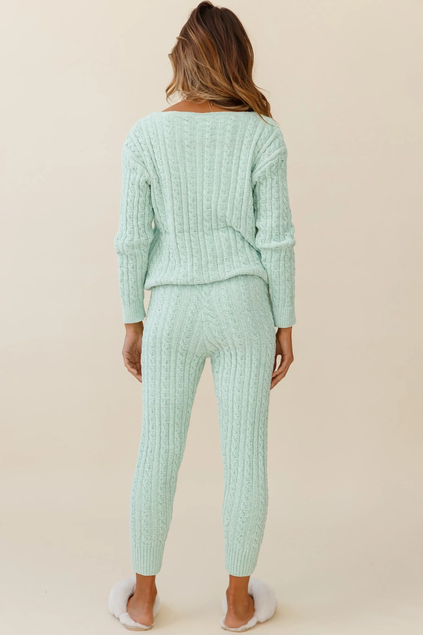 Kansas Cable Knit Fitted Pants Green