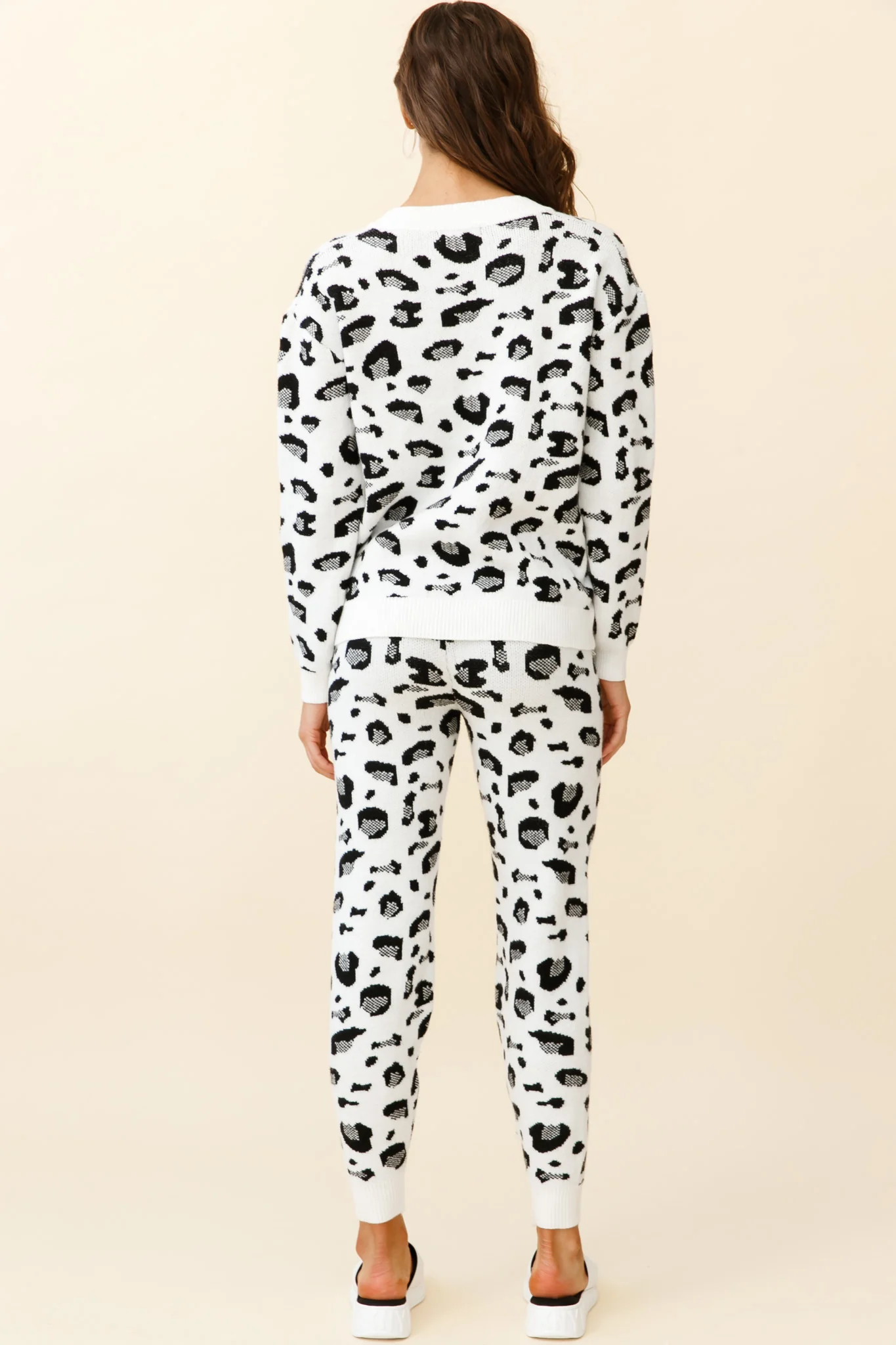 Chase The Moon V-Neck Sweater & Pants Set White Leopard Print