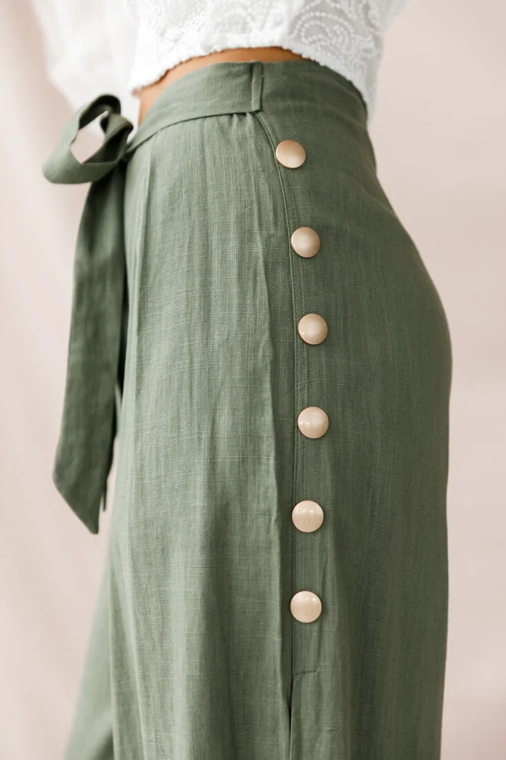 Aruba Wide Leg Side Split Pants Khaki