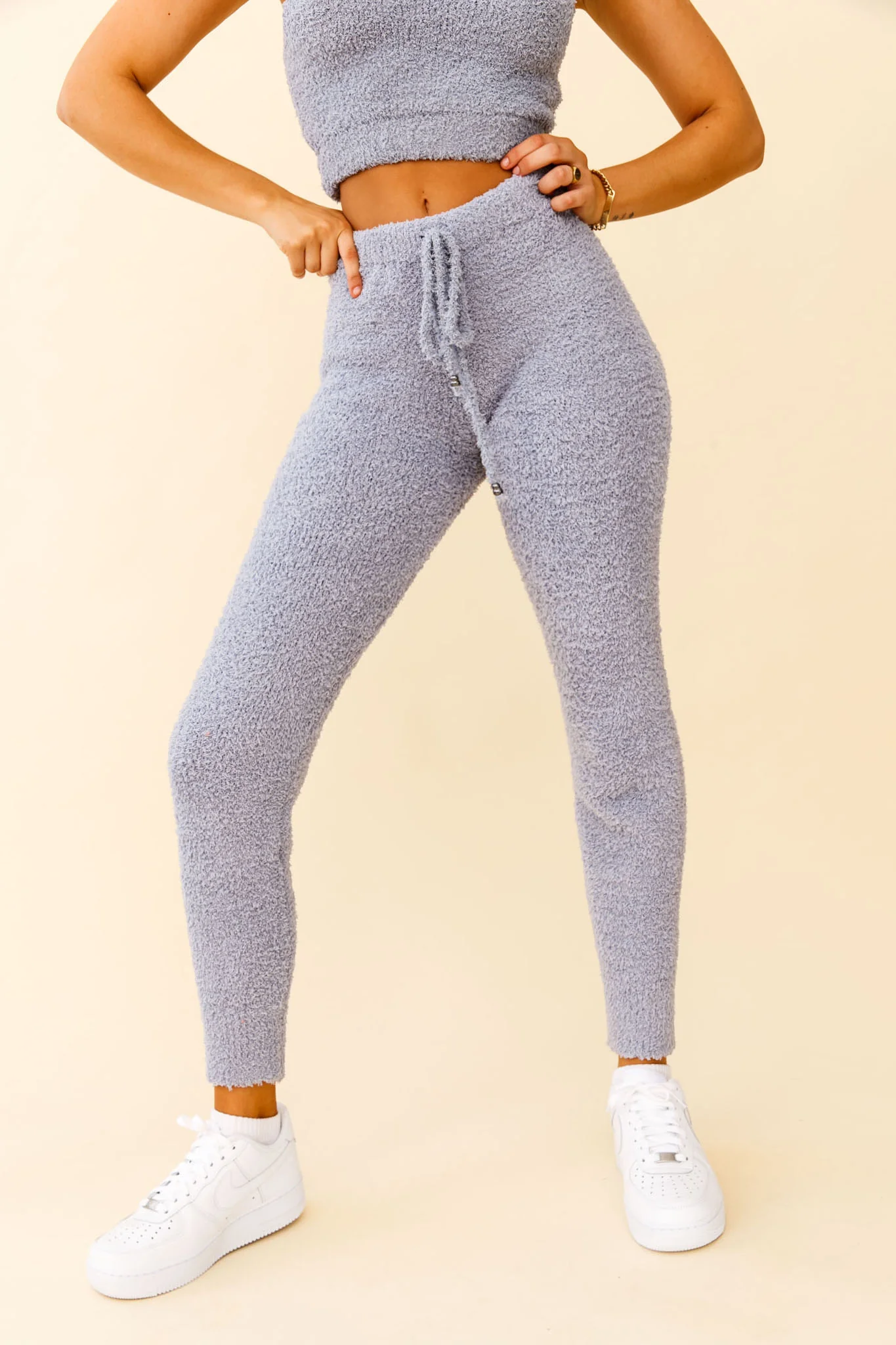 My Girl Fuzzy Knit Jogger Pants Steel Blue