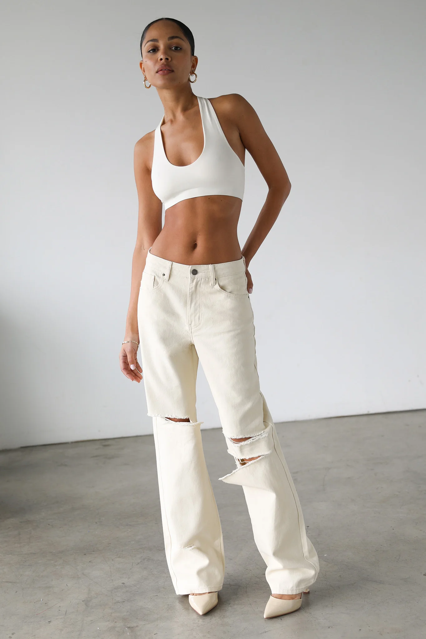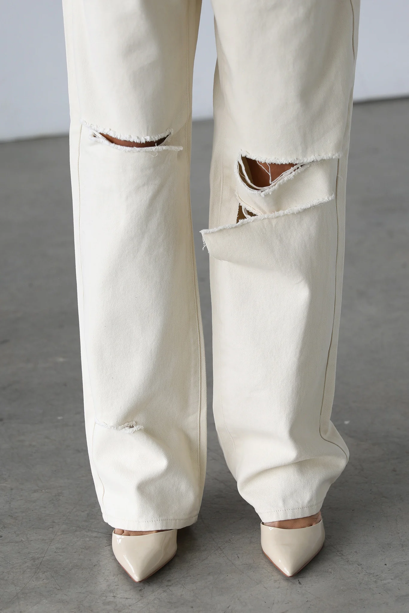DOGMA Straight Wide Leg Skater Denim Jeans Cream