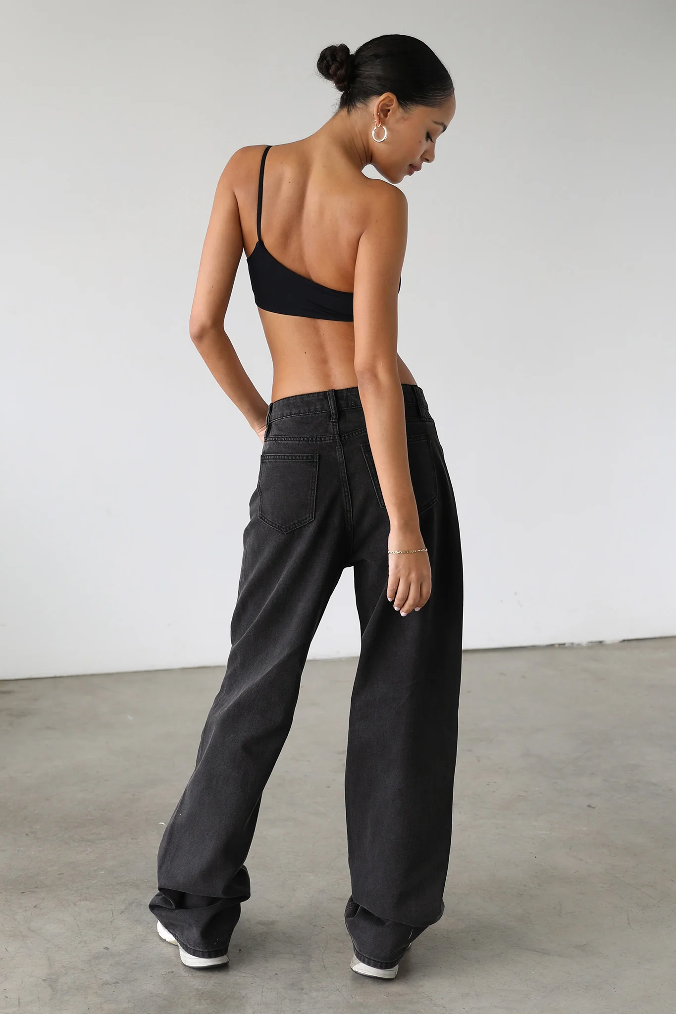 DOGMA High Rise Straight Wide Leg Skater Denim Jeans Black Wash