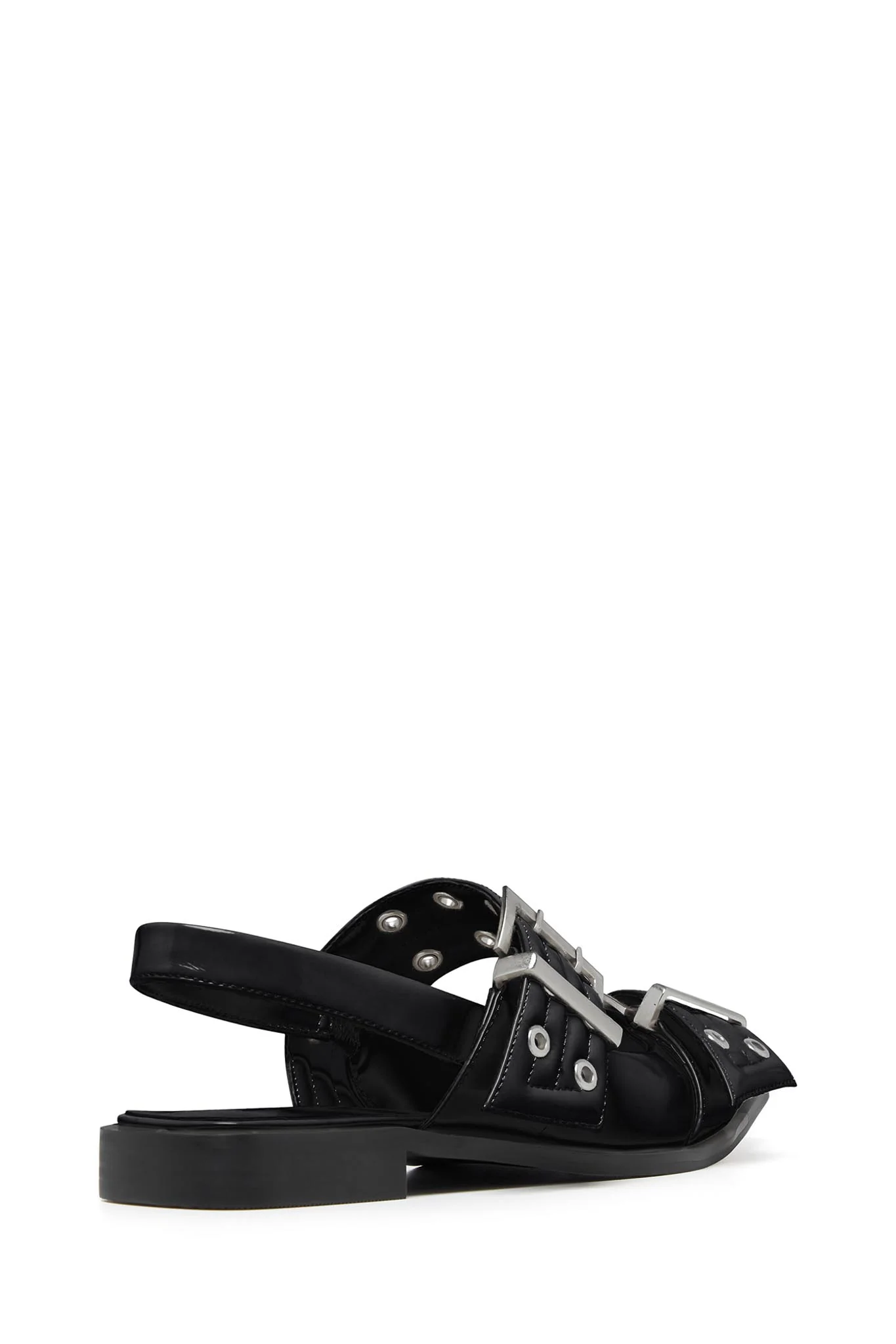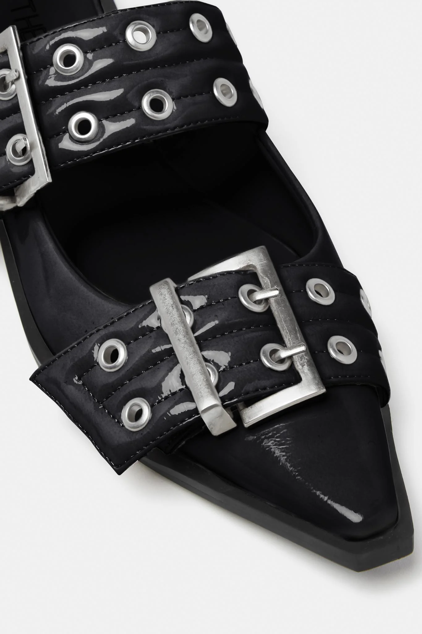 VERALi Banks Buckled Mary-Jane Flats Black Patent