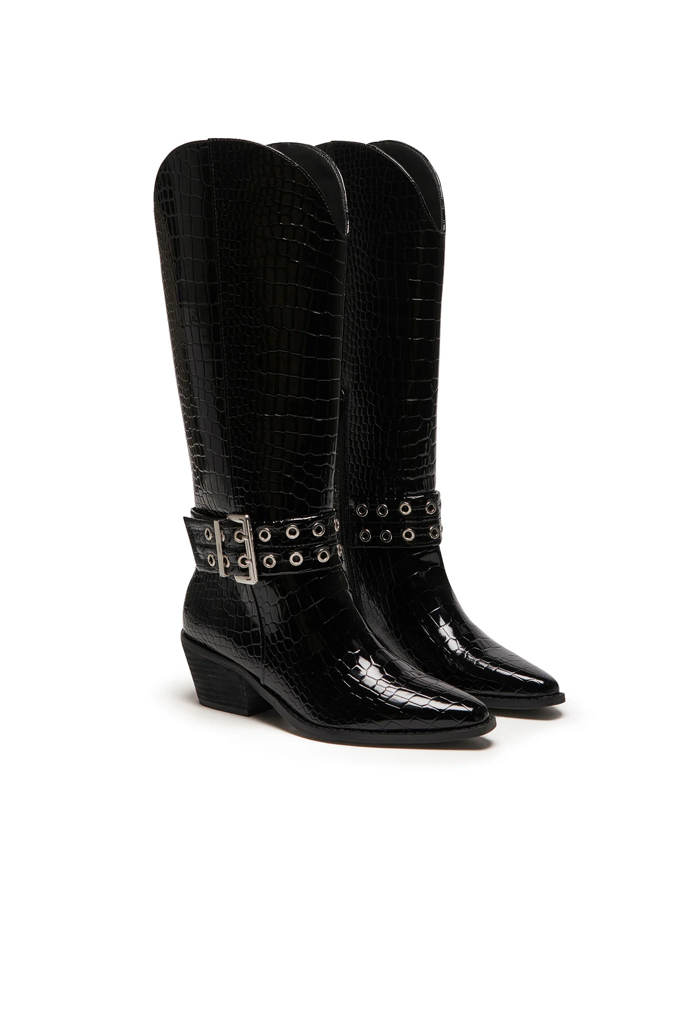 THERAPY Maiden Cowboy Boot Black Patent Croc