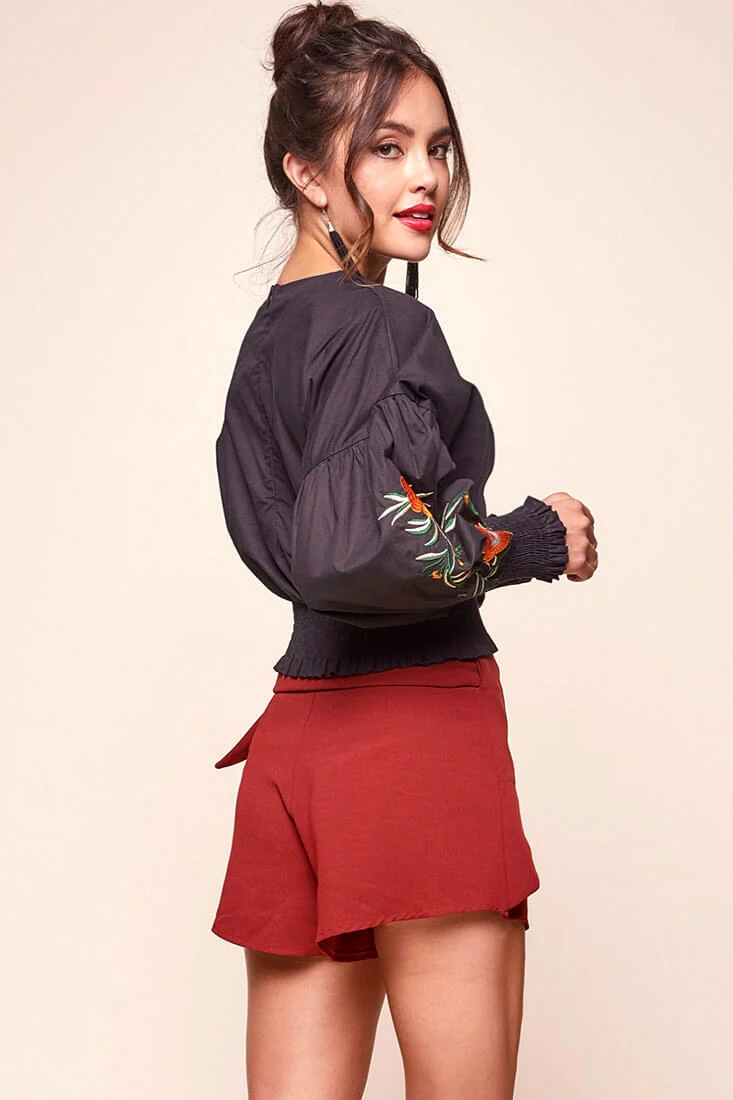 Simone Dressy Wrap Shorts Burnt Orange