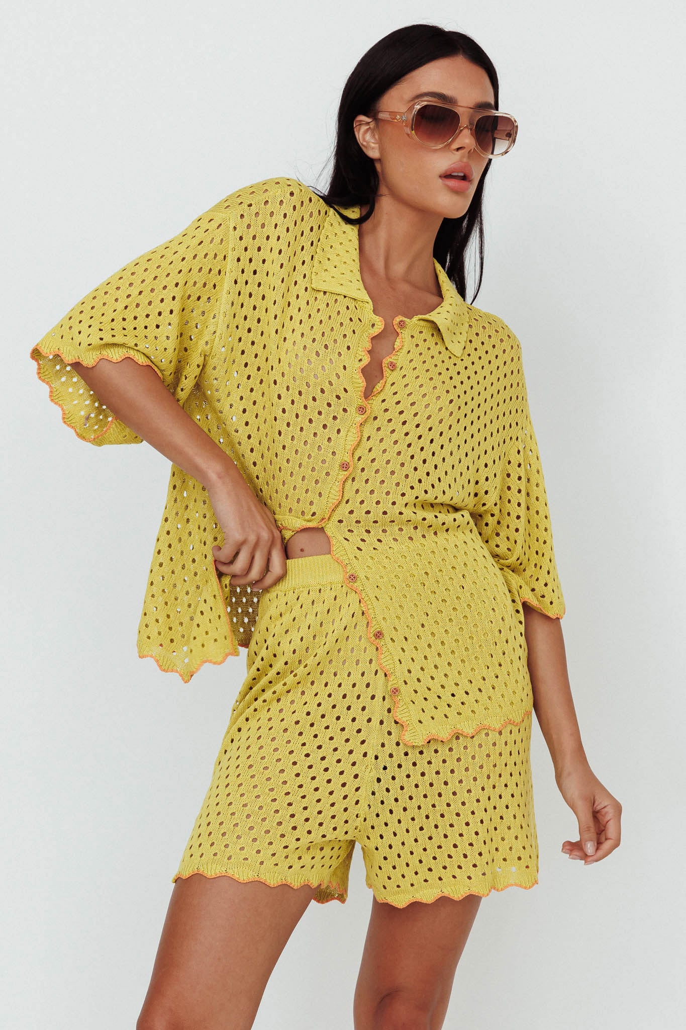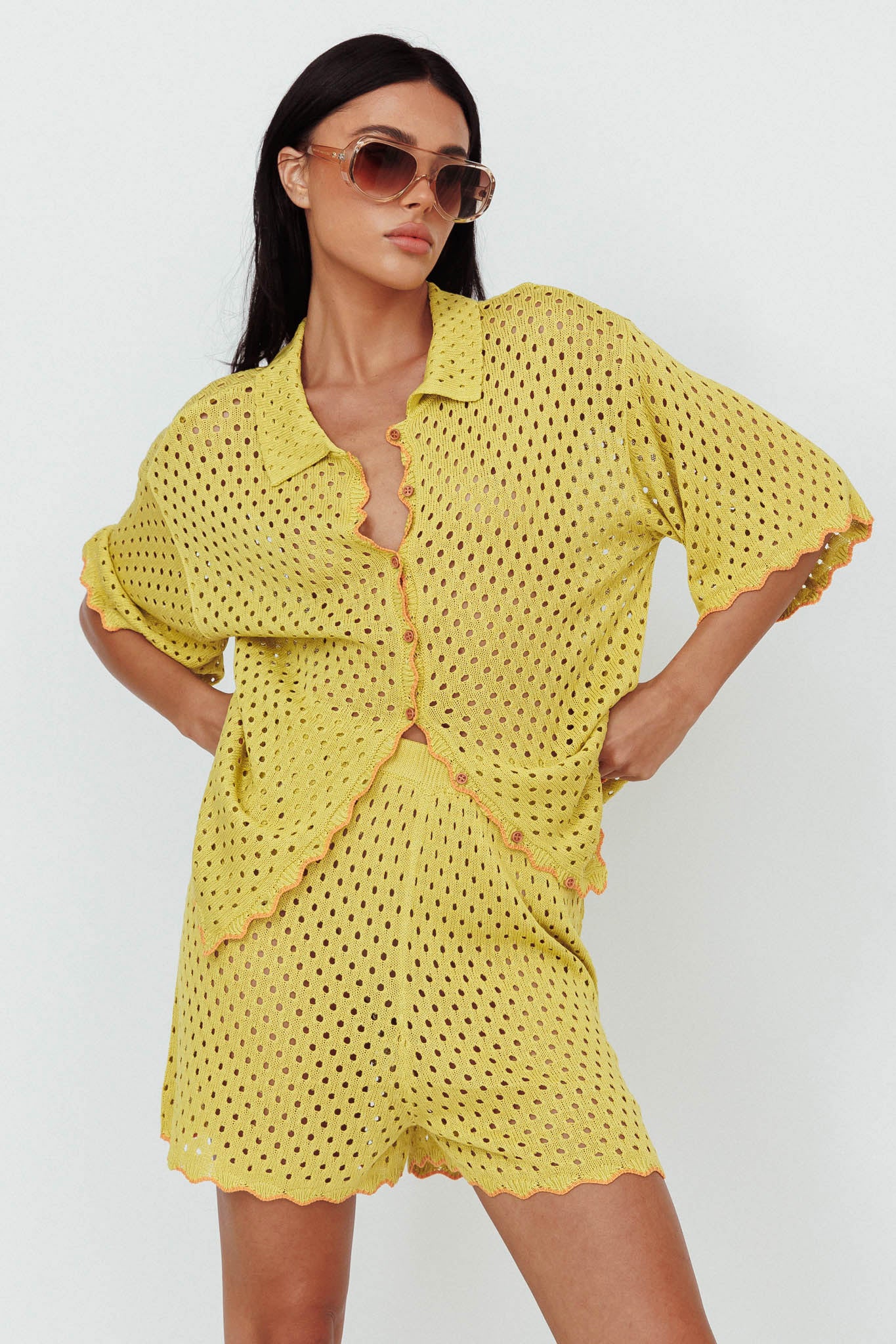 Just A Hunch Crochet Shorts Avocado/Pumpkin