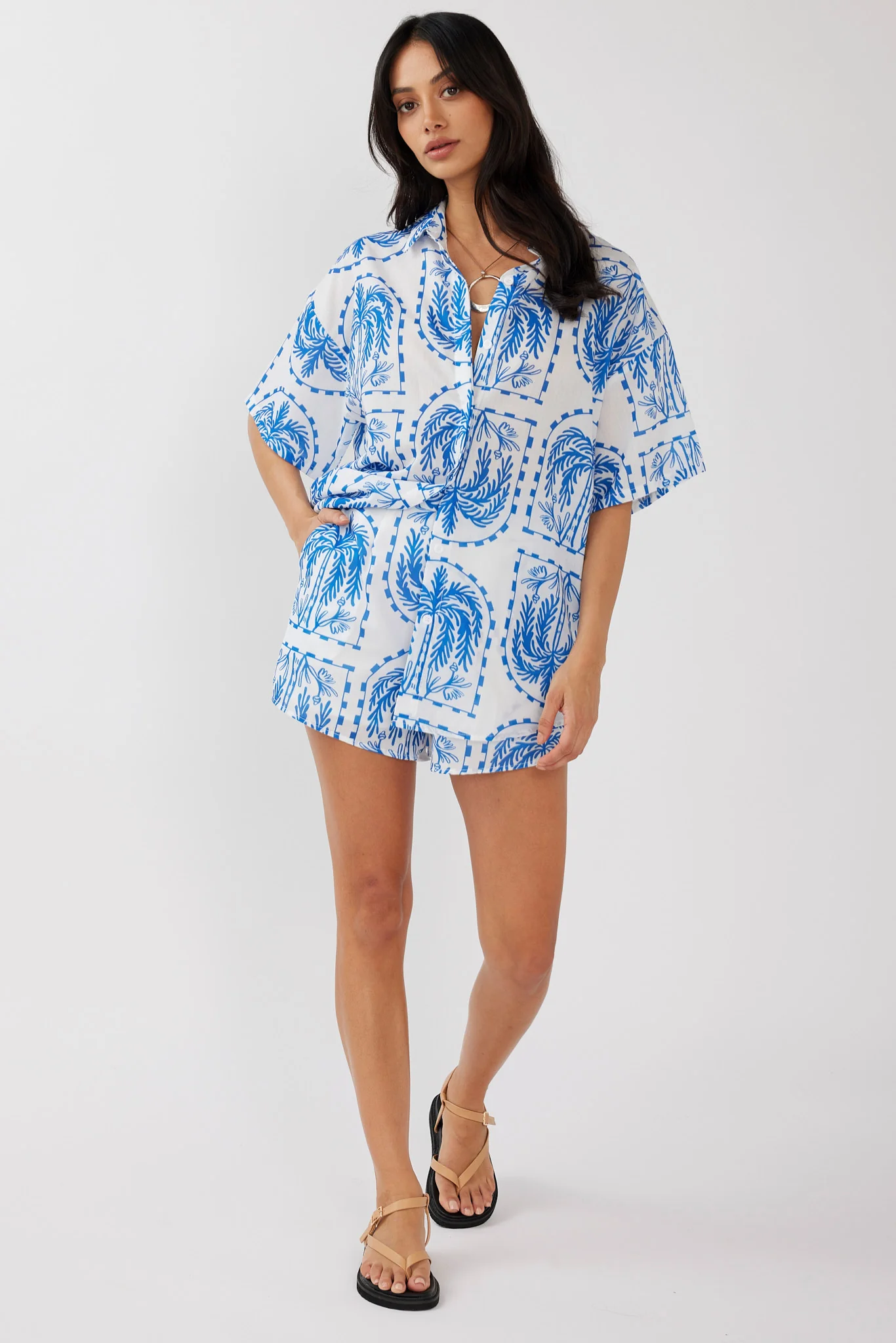 On Vacay Elastic Waist Shorts Print Blue