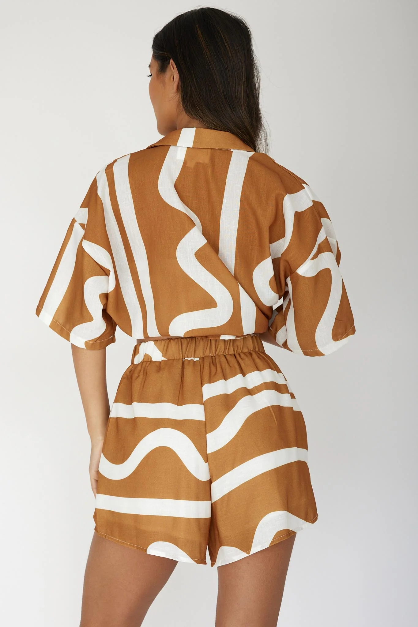 Cora Elastic Waist Shorts Print Tan
