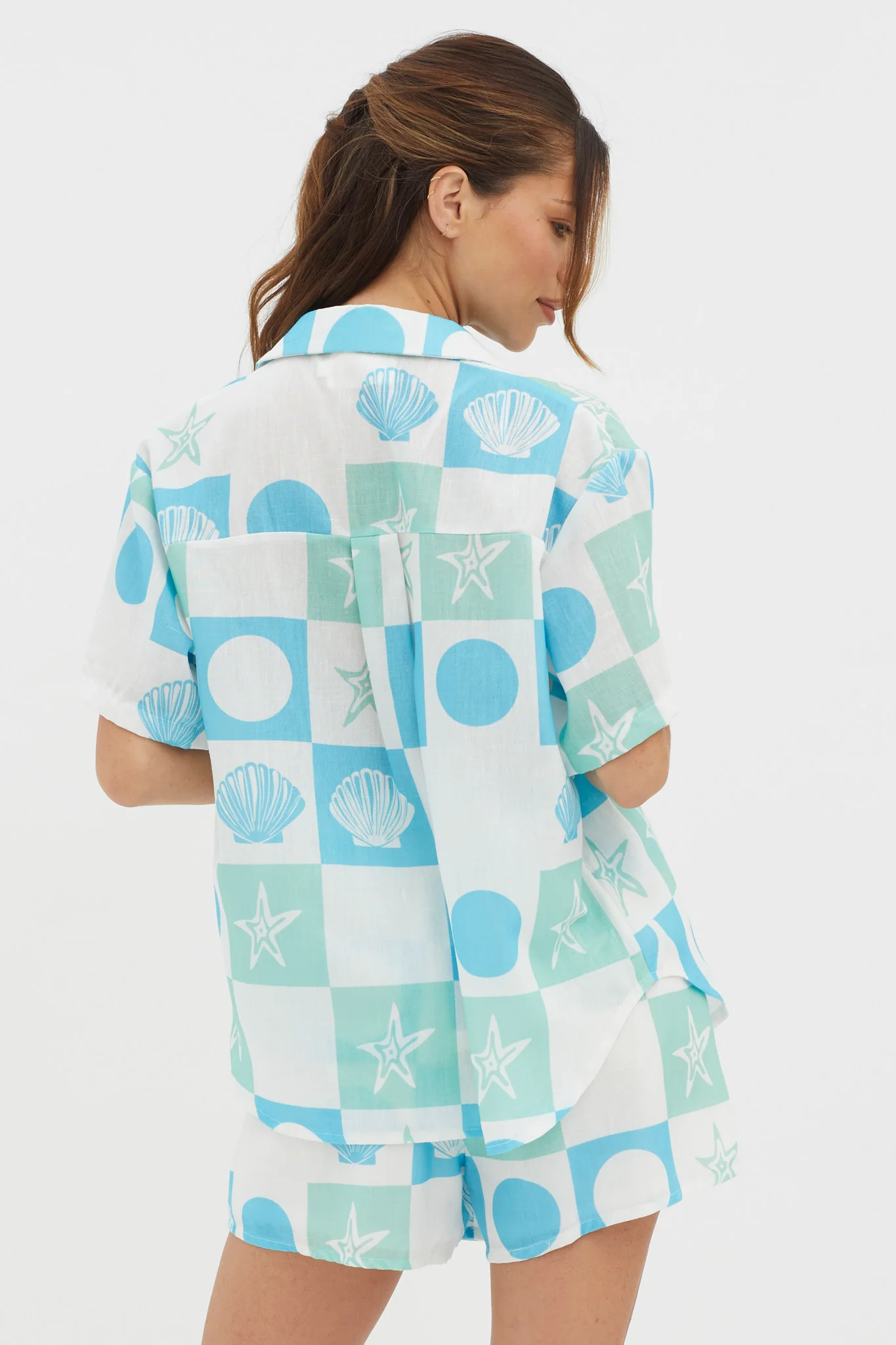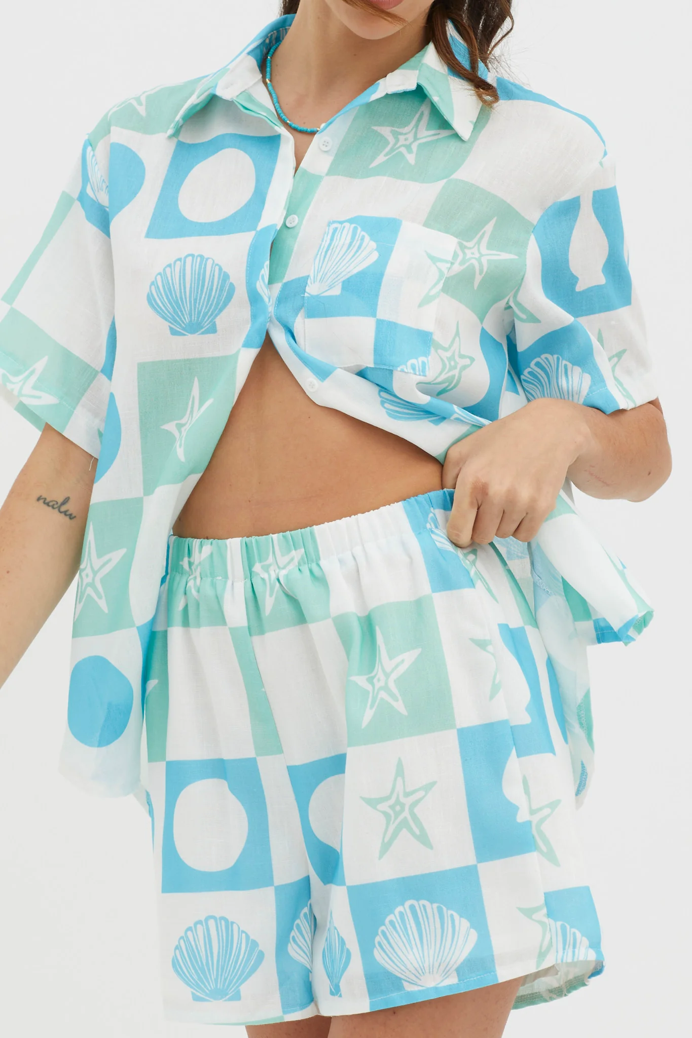 Cora Elastic Waist Shorts Print Blue White