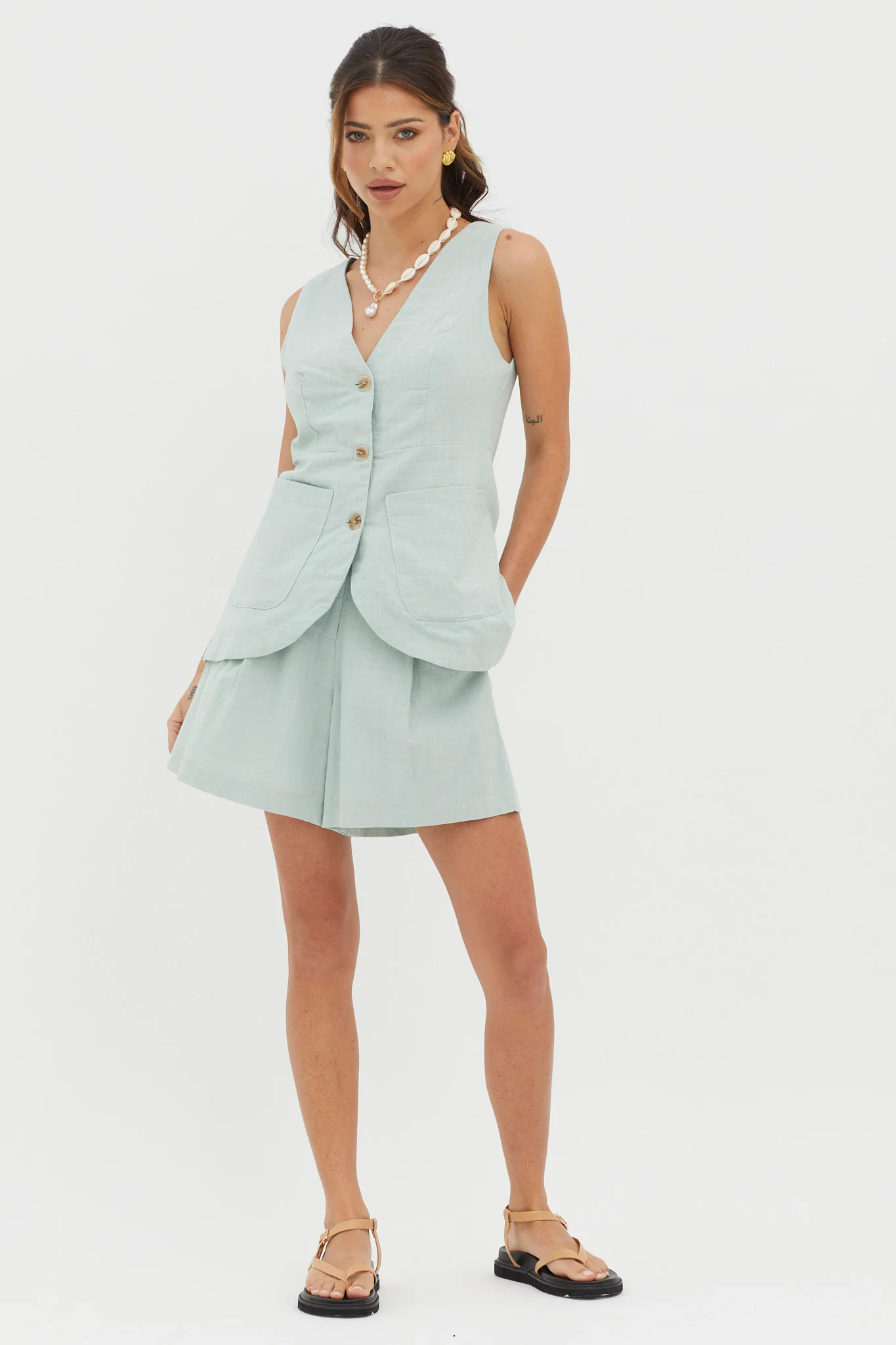 Philomena Pleat Shorts Sage