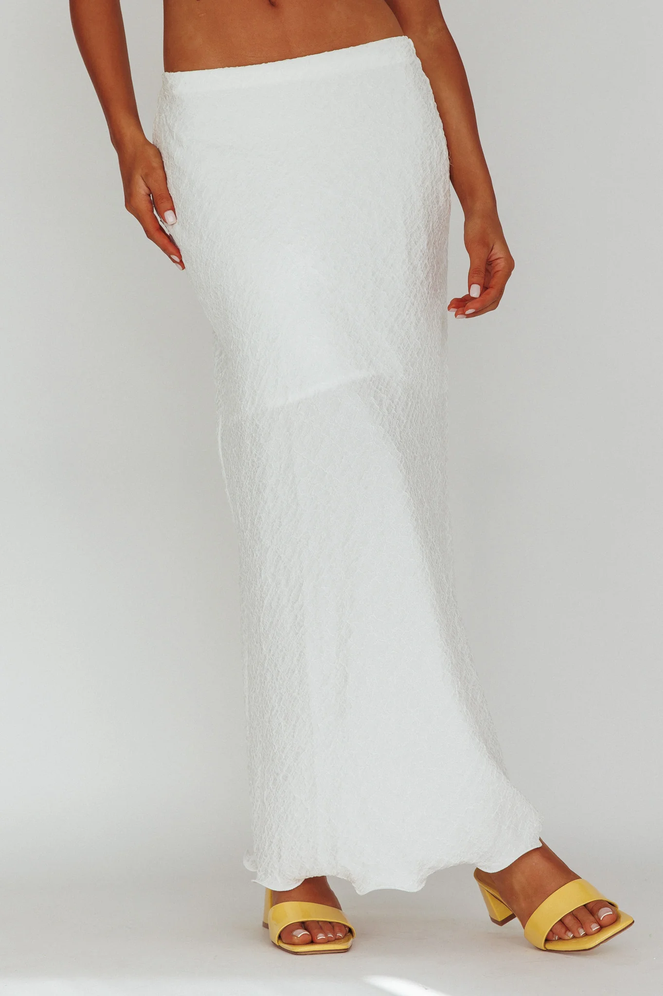 Treasures Textured Midi Skirt White