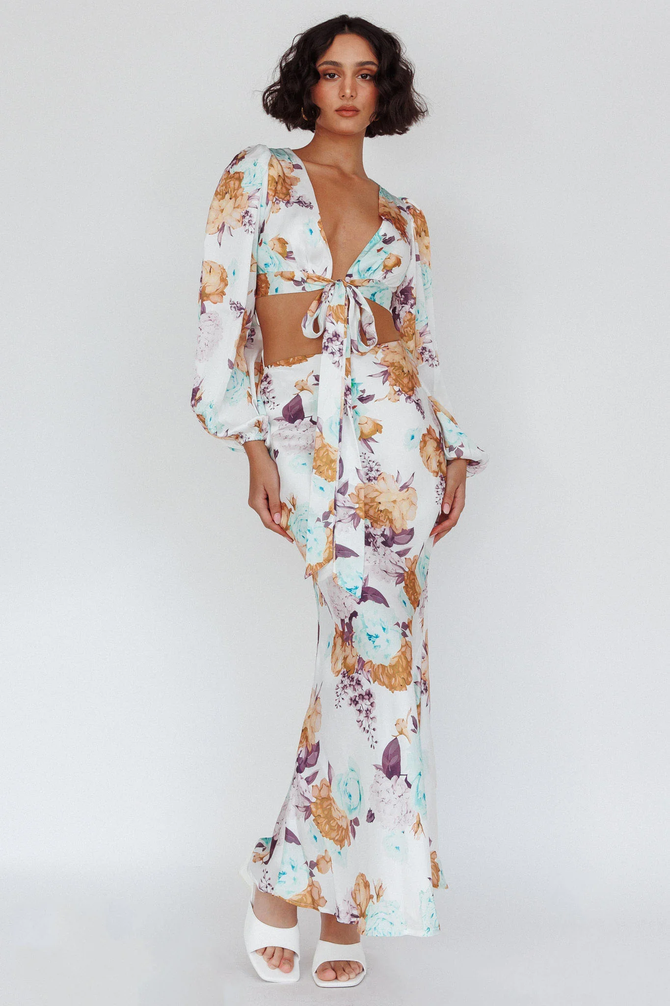 Manila Satin Maxi Skirt Blue Floral