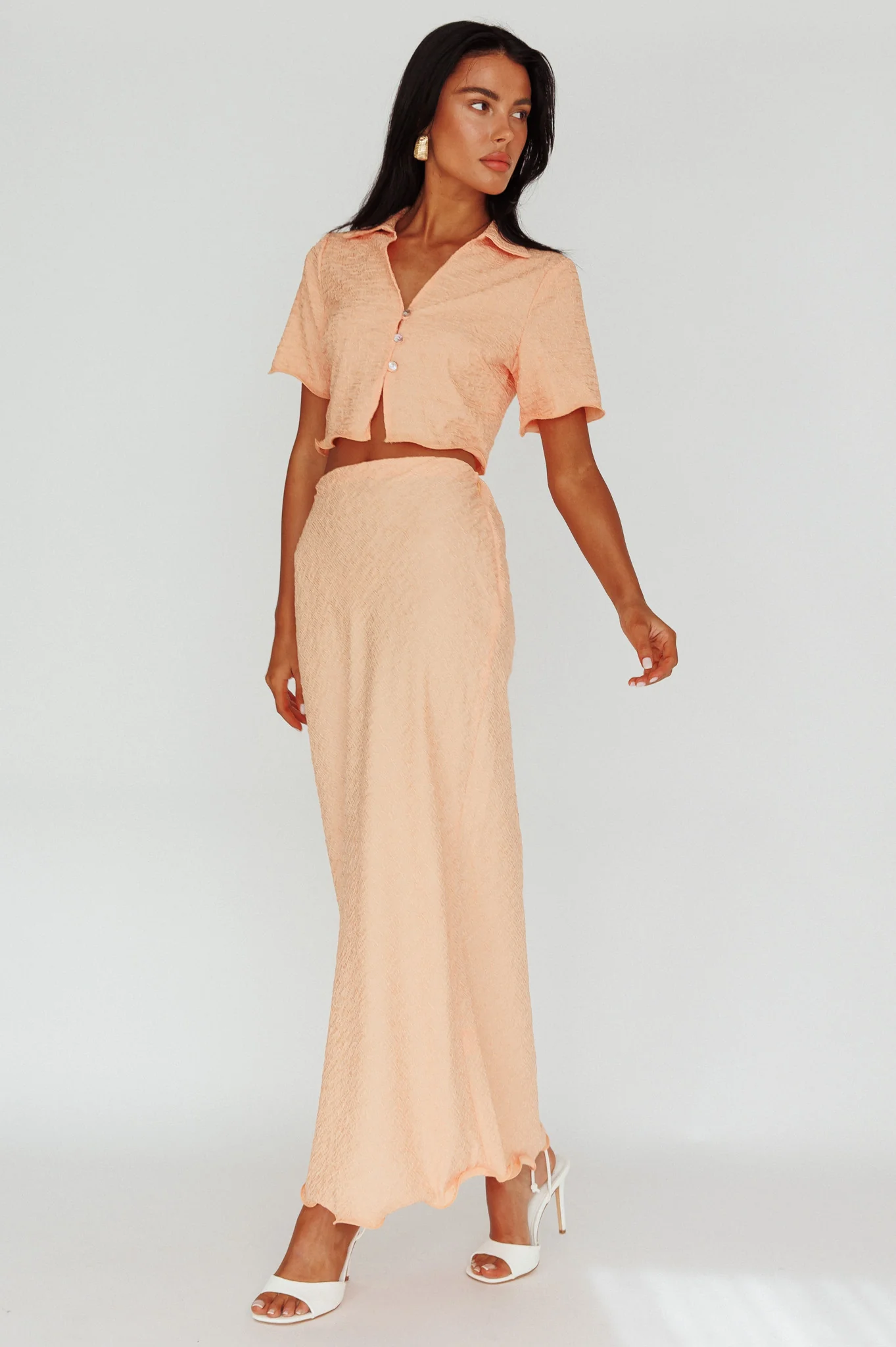Roman Midi Skirt Textured Melon