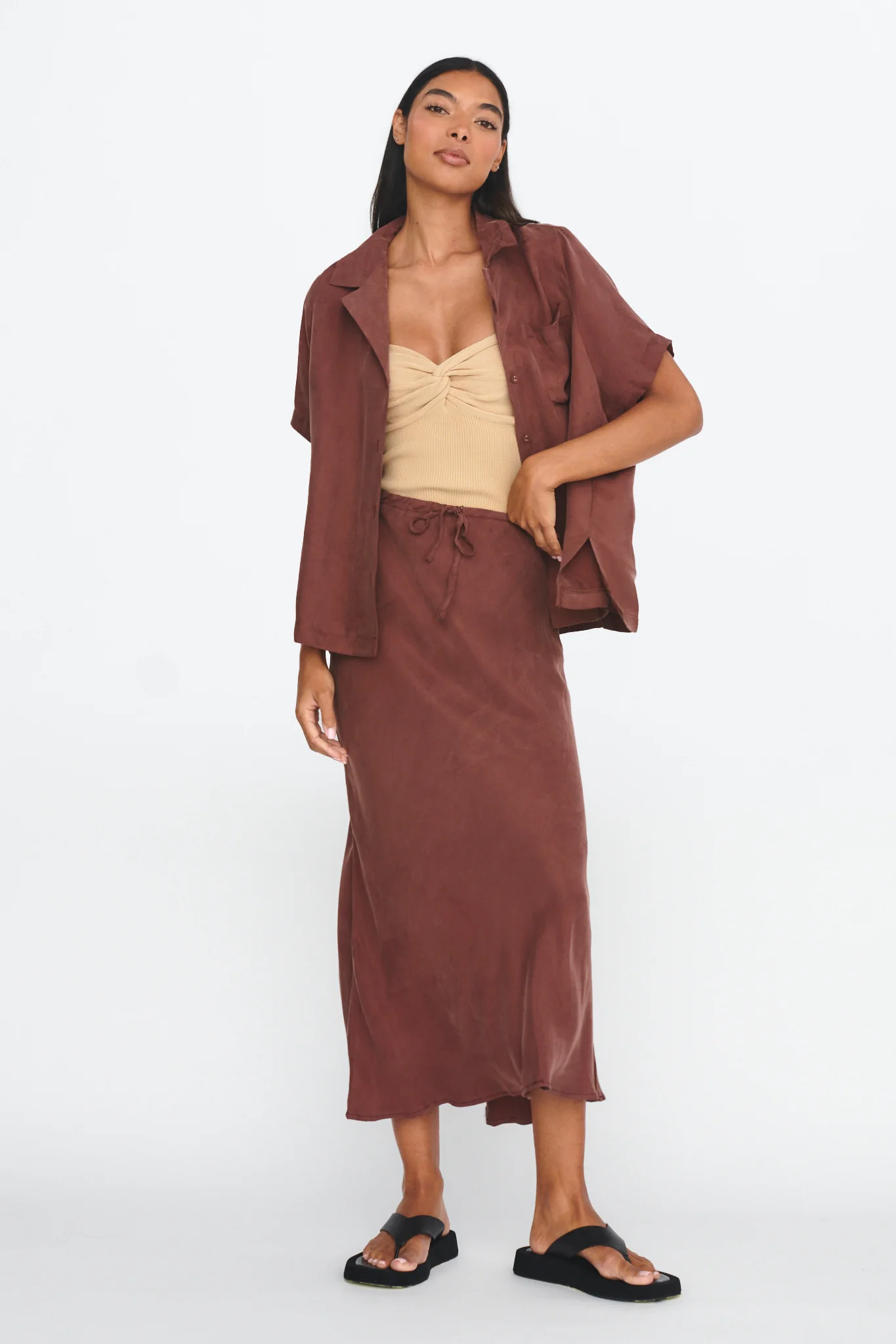 Merisa Drawstring Midi Skirt Choco