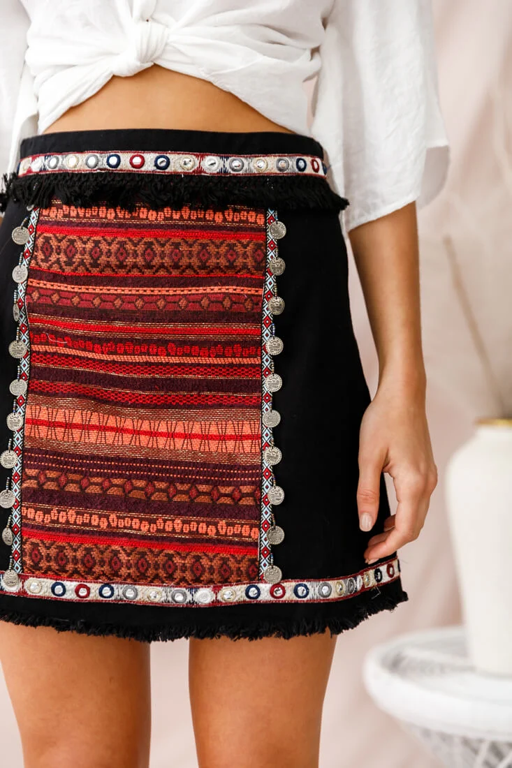 Inca Embellished Skirt Black