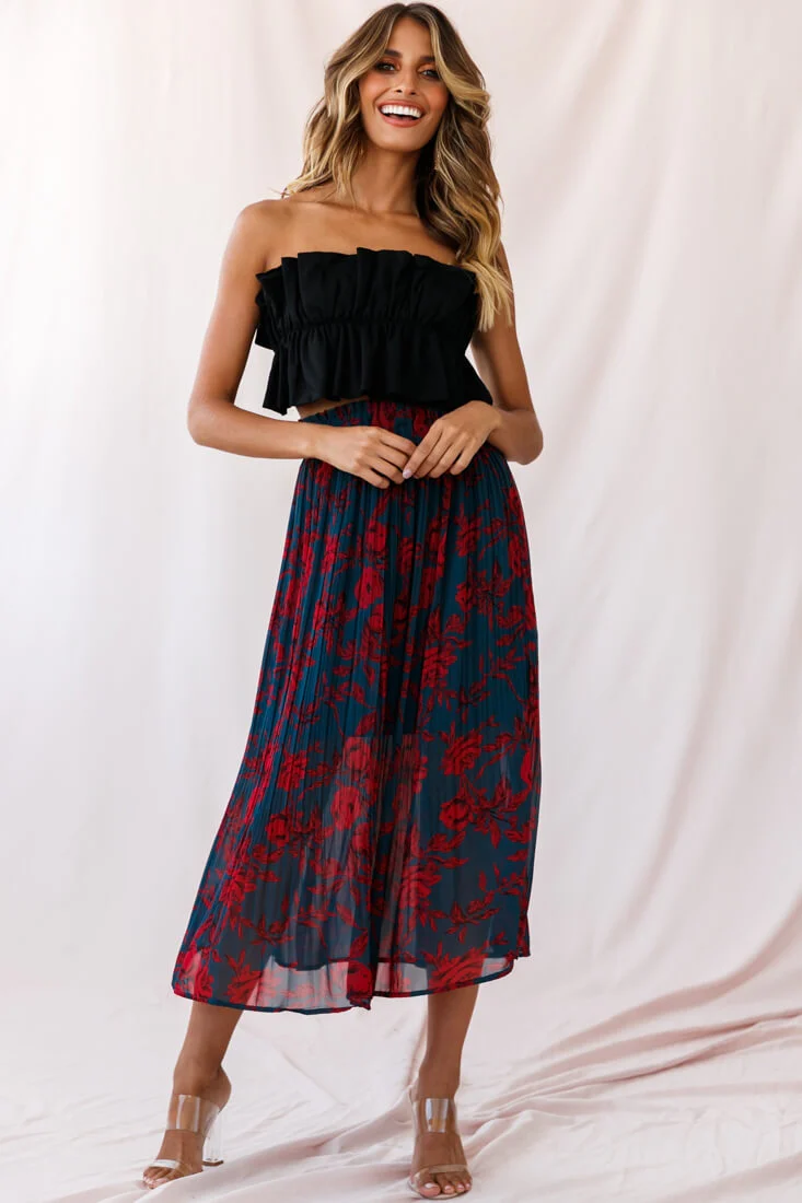 Caroline Accordion Pleat Midi Skirt Forest Green/Red