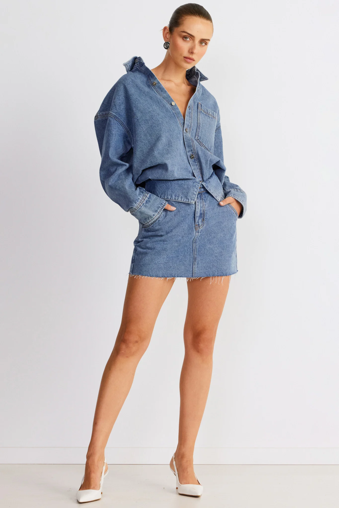 Caught Out Faux Pocket Mini Skirt Dark Denim