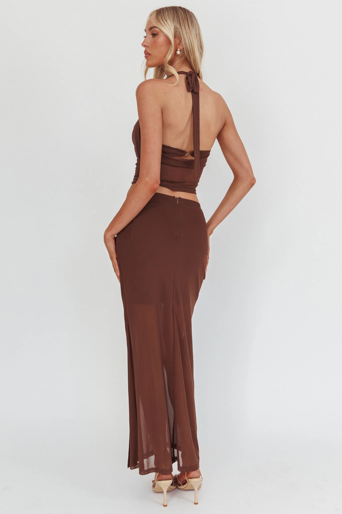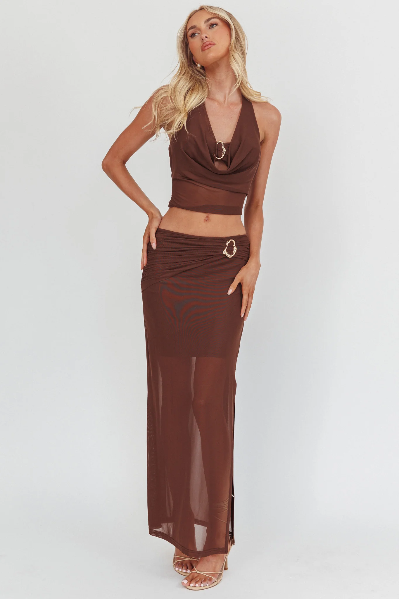 Paullina Gold Buckle Mesh Maxi Skirt Brown