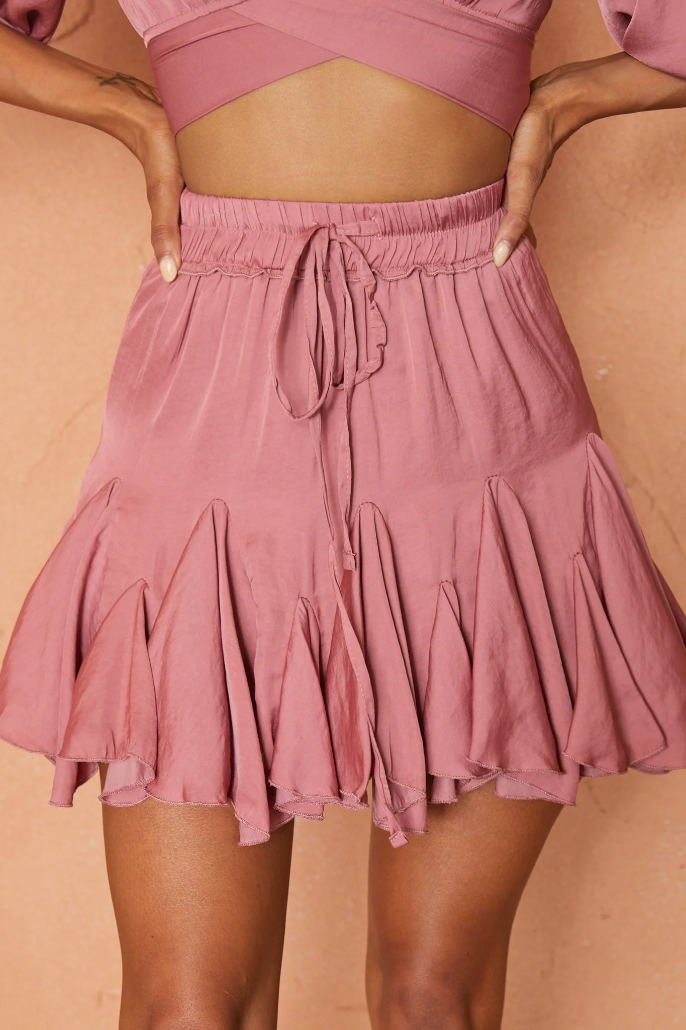 Alexi Mini Skirt Frill Trim Crepe Texture Baby Pink